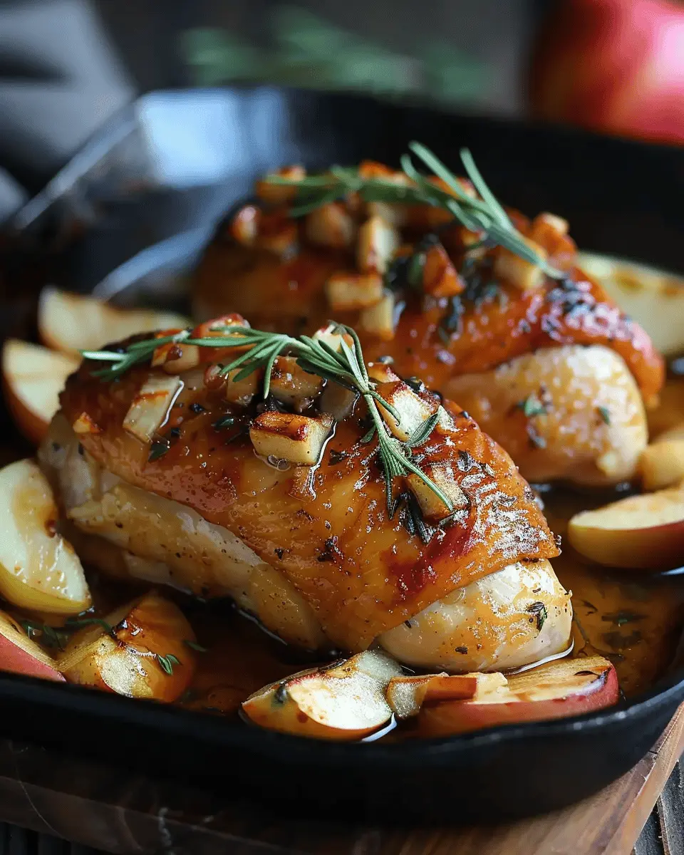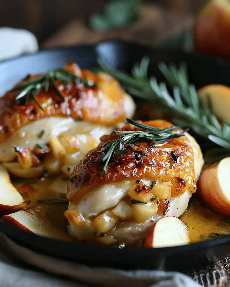 Serving this dish with a tangy apple cider reduction or a side of warm, crusty bread enhances the overall experience. For a sweet touch, consider drizzling a little honey over the chicken before serving.