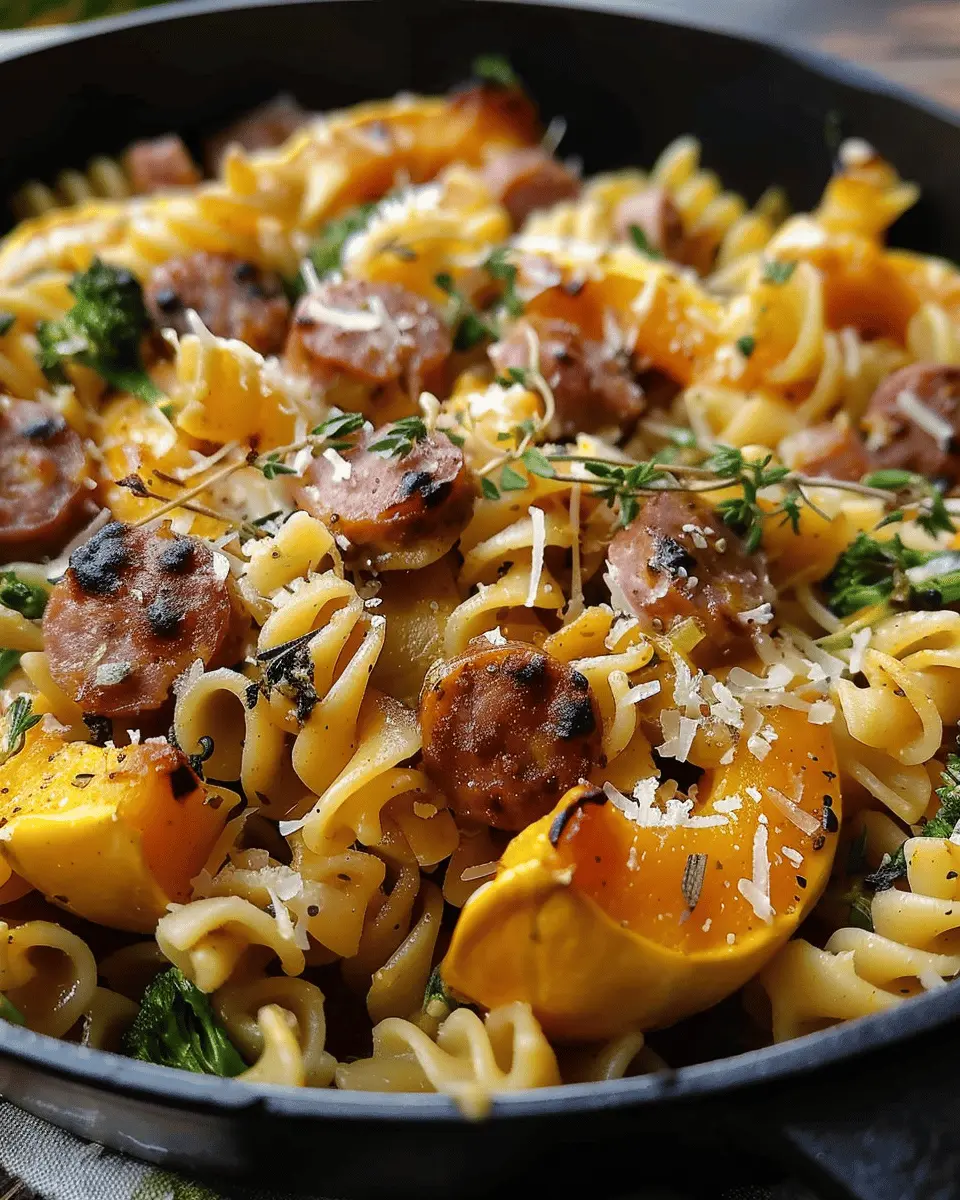 Bring the flavors of fall into your kitchen with this easy recipe for Autumn Sausage Pasta Squash!