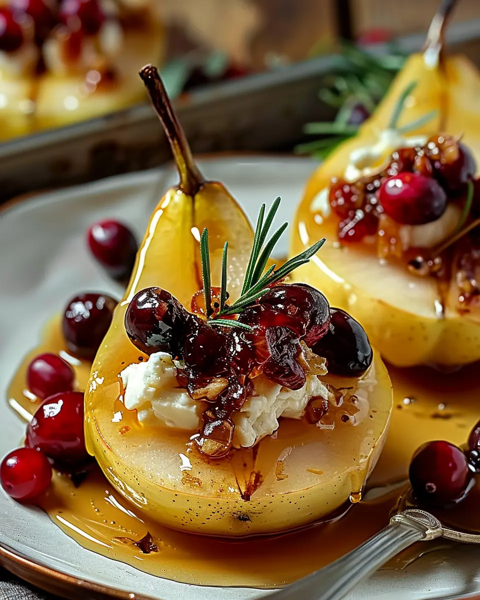Keywords: Baked Pears with Goat Cheese, Honey, and Cranberries