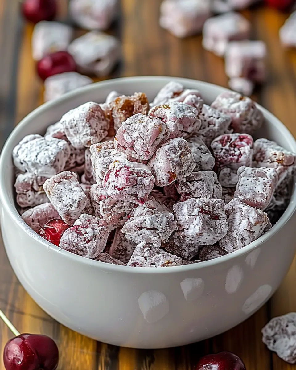 PrintCherry Cheesecake Puppy Chow: Indulgent Treat for All Ages