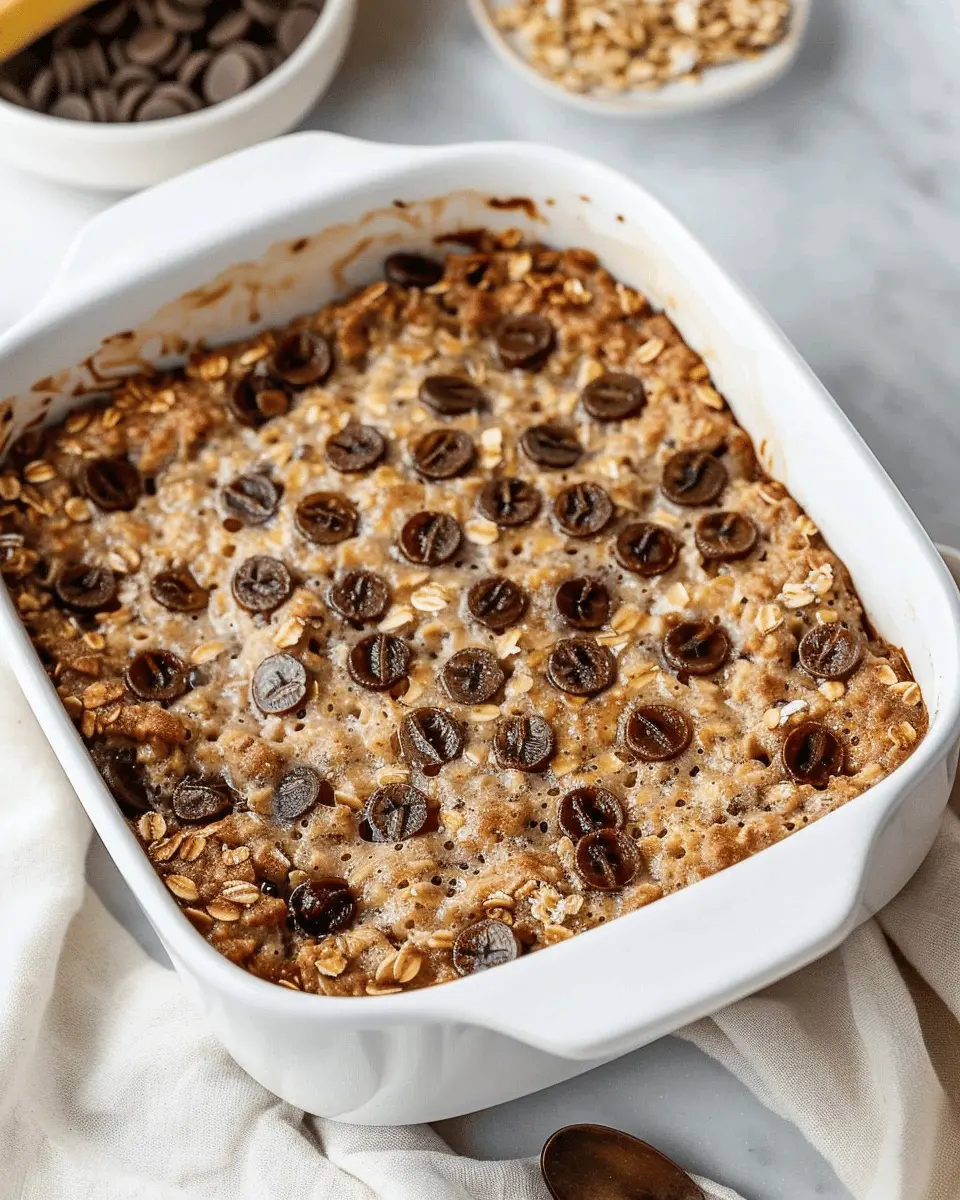 A delicious and healthy twist on baked oatmeal that combines the flavors of banana and chocolate.
