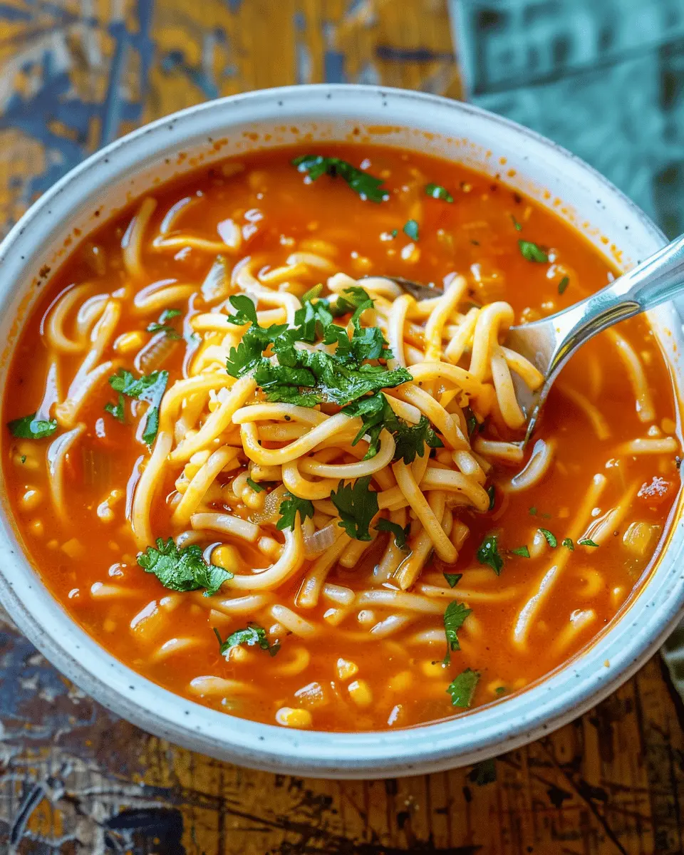 If you’re looking to make a Cozy Mexican Noodle Soup that fits a vegetarian or vegan diet, you’re in for a treat! Start by swapping out your chicken broth for a robust vegetable broth. This foundation allows the deep, rich flavors of spices like cumin and chili powder to shine through.