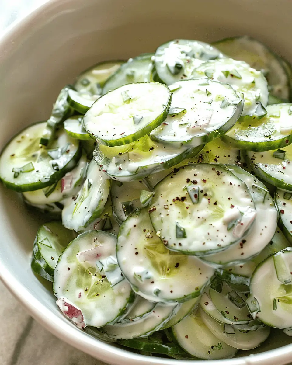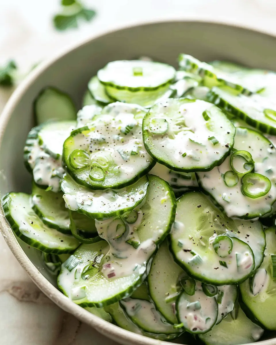 PrintCreamy Cucumber Salad: Easy and Delightful with Turkey Bacon