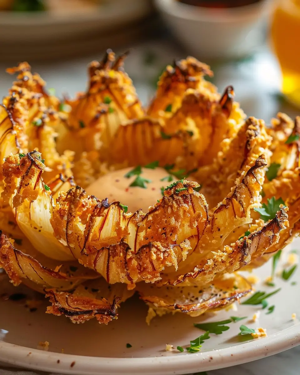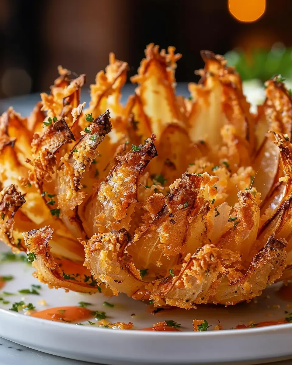 Keywords: Crispy Oven-Baked Blooming Onion, Spicy Dipping Sauce