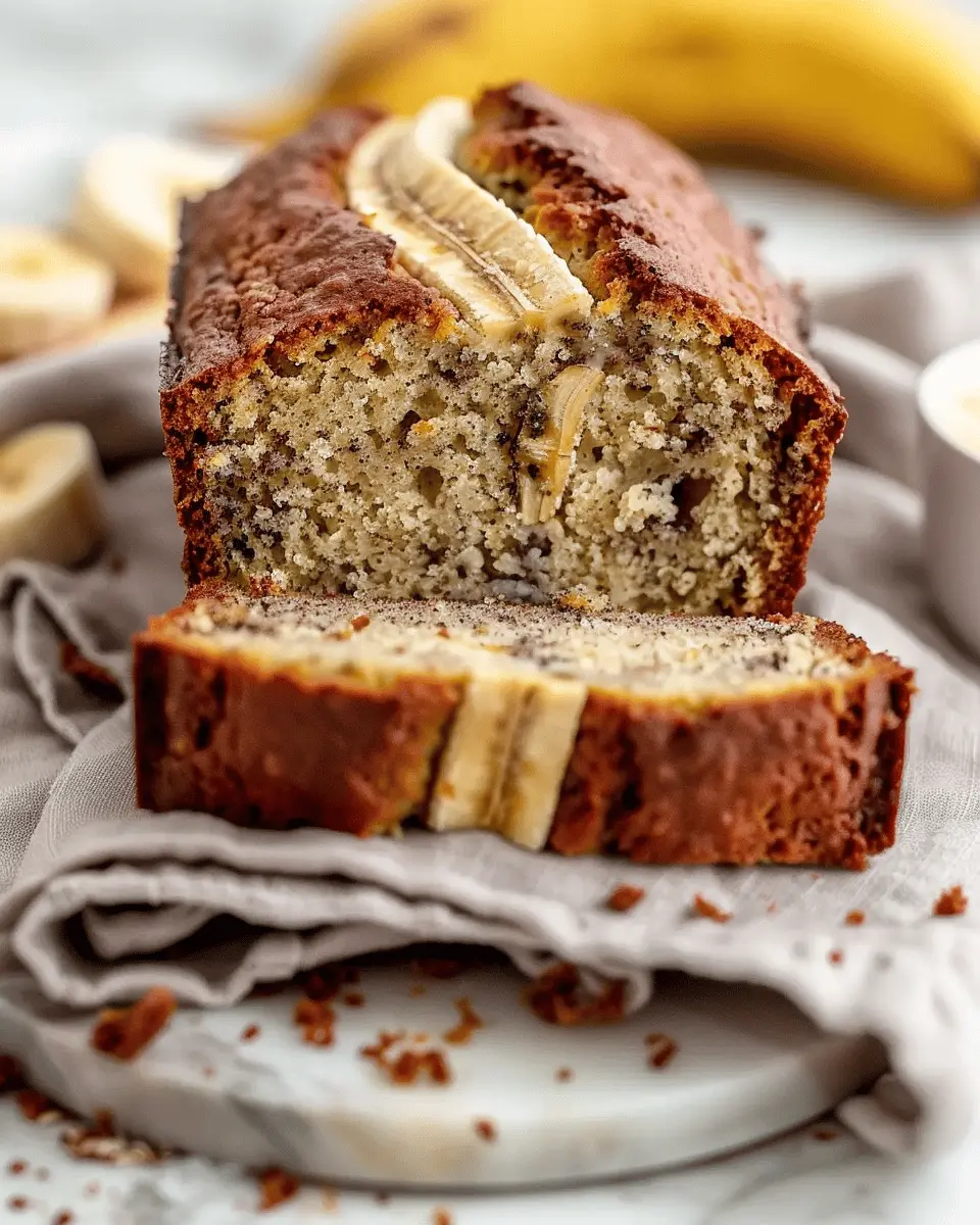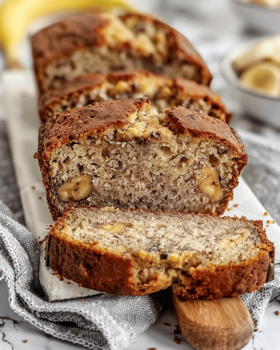 This banana bread doubles as a delightful snack or dessert. Serve it warm with a scoop of vanilla ice cream for an irresistible treat, or enjoy it simply dusted with powdered sugar. Another great option is to slice it thinly and make mini sandwiches with turkey bacon or chicken ham in between. The sweet and savory combo is sure to be a hit among friends and family!