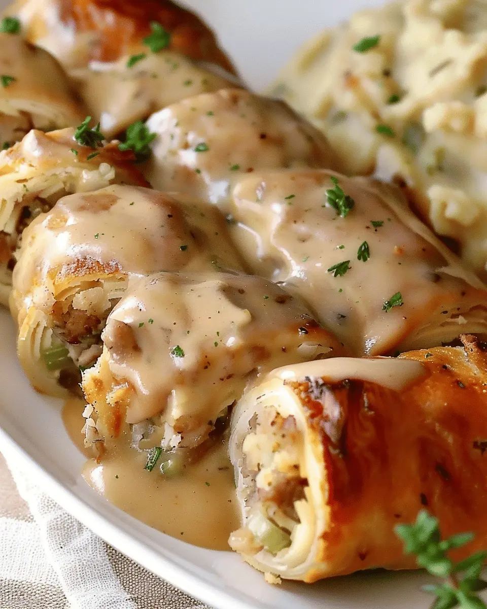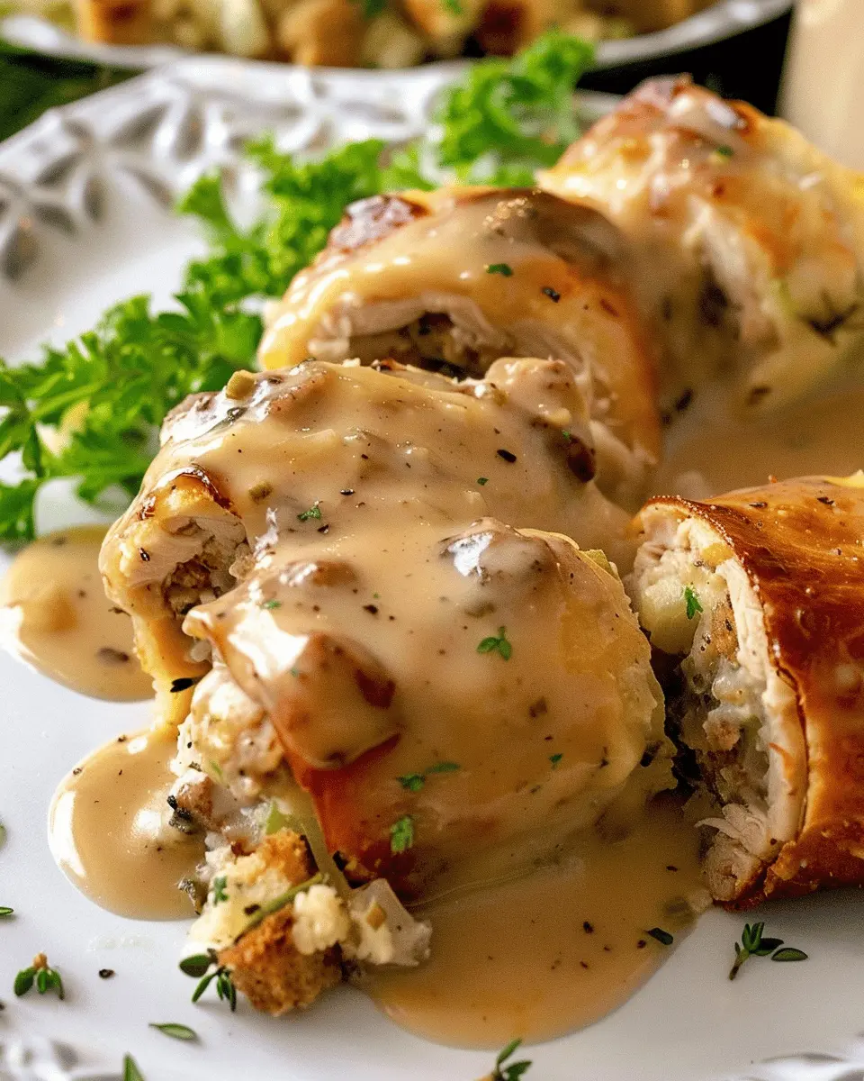 In summary, Easy Turkey & Stuffing Roll Ups are not just a recipe; they’re a comforting meal perfect for any occasion. With tender turkey, hearty stuffing, and a luscious creamy gravy, this dish is sure to impress.