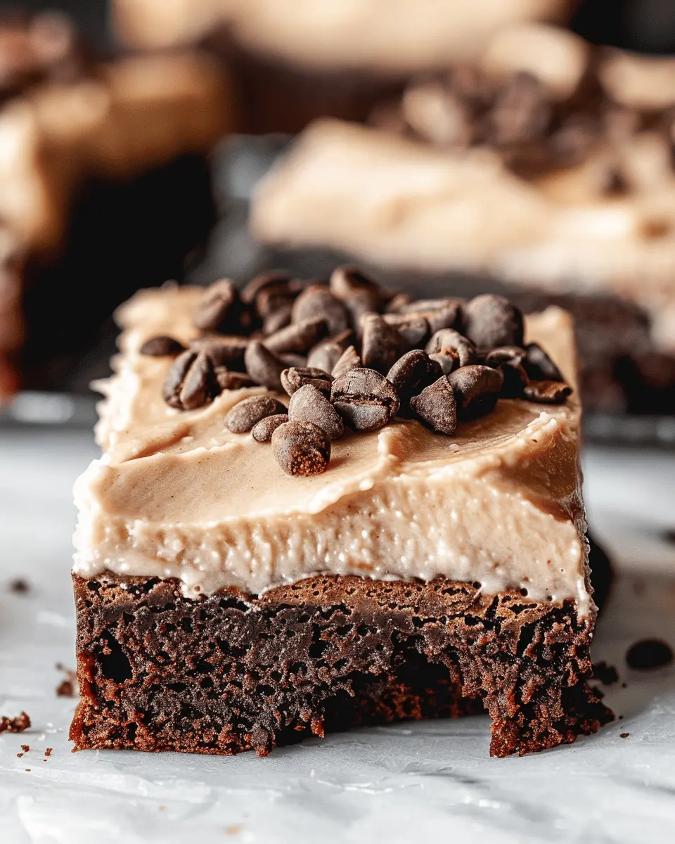 Indulge in the rich flavors of coffee with these decadent frosted brownies, perfect for any coffee lover.