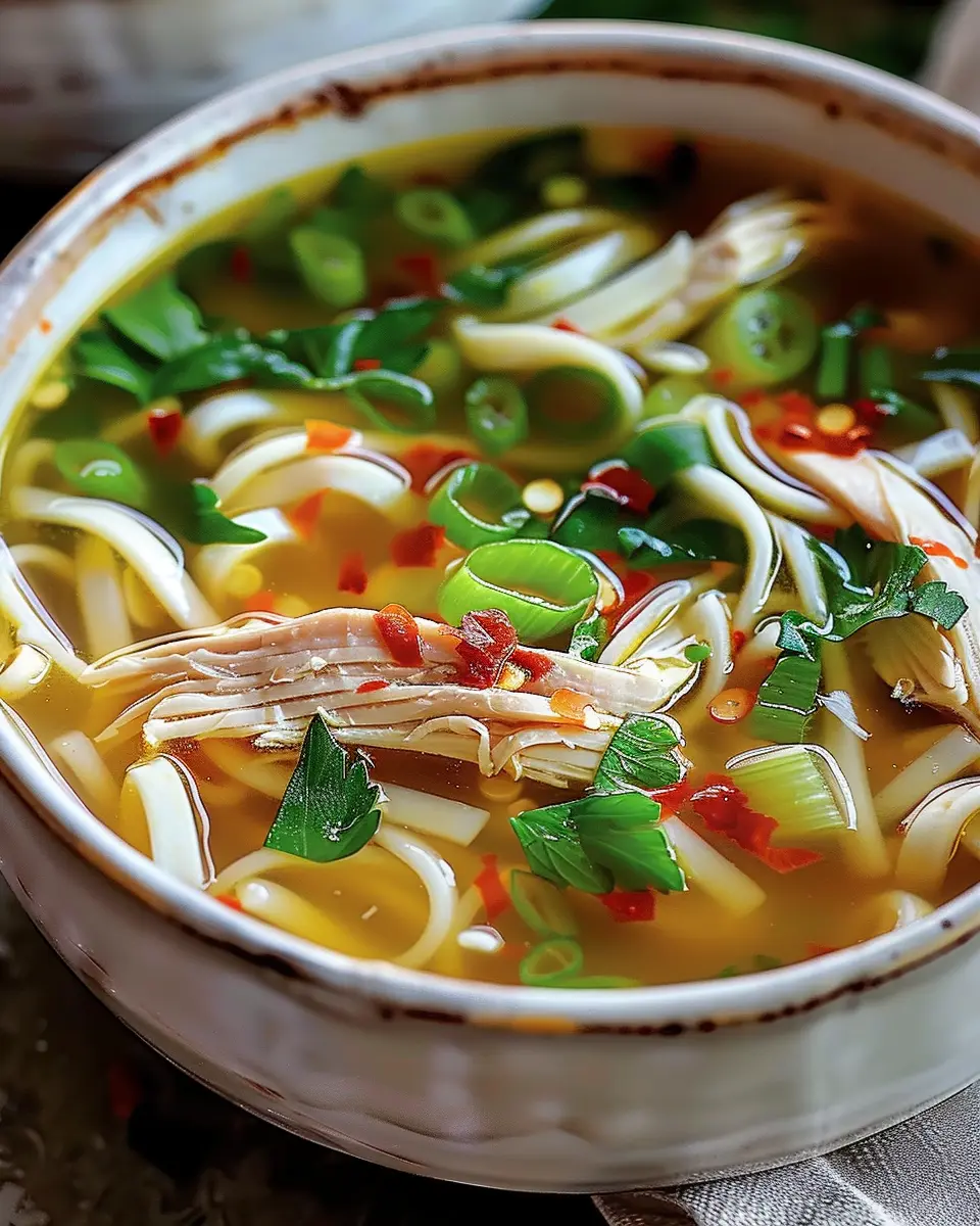 A warm and soothing bowl of Ginger Garlic Chicken Noodle Soup that combines aromatic spices and tender chicken for the ultimate comfort meal.