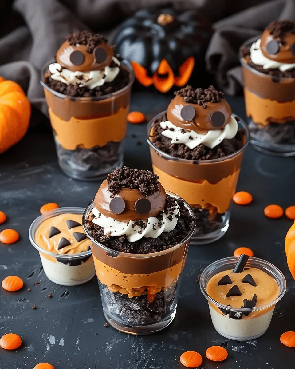 Customizable Presentation: The aesthetic of these cups can turn heads and excite kids and adults alike. Layered with chocolate pudding, crushed cookies, and topped with vibrant gummy candies (think adorable candy pumpkins) or real pumpkin pieces, they create the visual representation of a pumpkin patch.