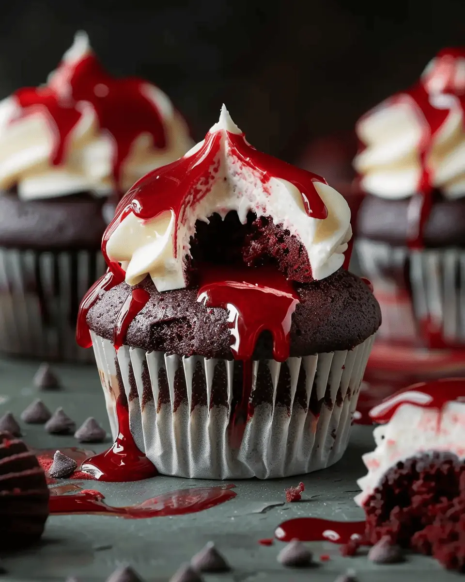 These Halloween Vampire Bite Cupcakes are a fun and spooky treat, perfect for Halloween parties and celebrations.
