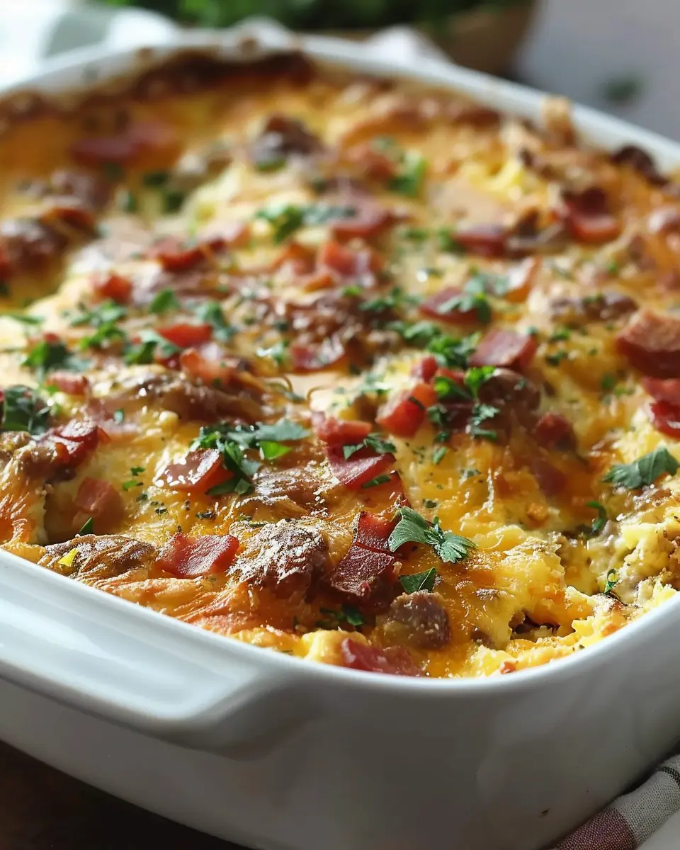 PrintIna Garten Breakfast Casserole with Turkey Bacon and Chicken Ham