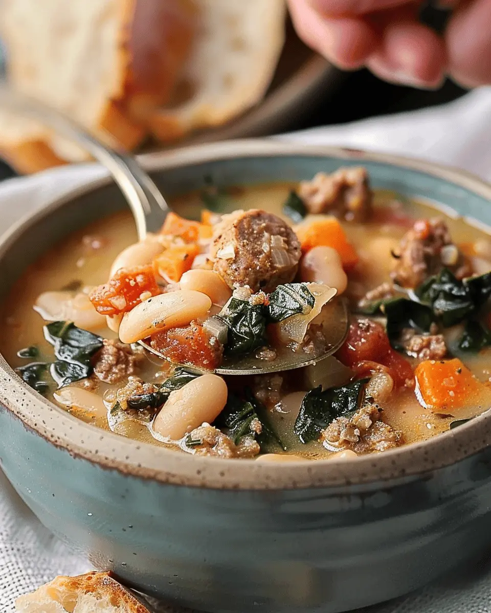 A hearty and flavorful Italian sausage and white bean soup that makes for a perfect cozy meal.