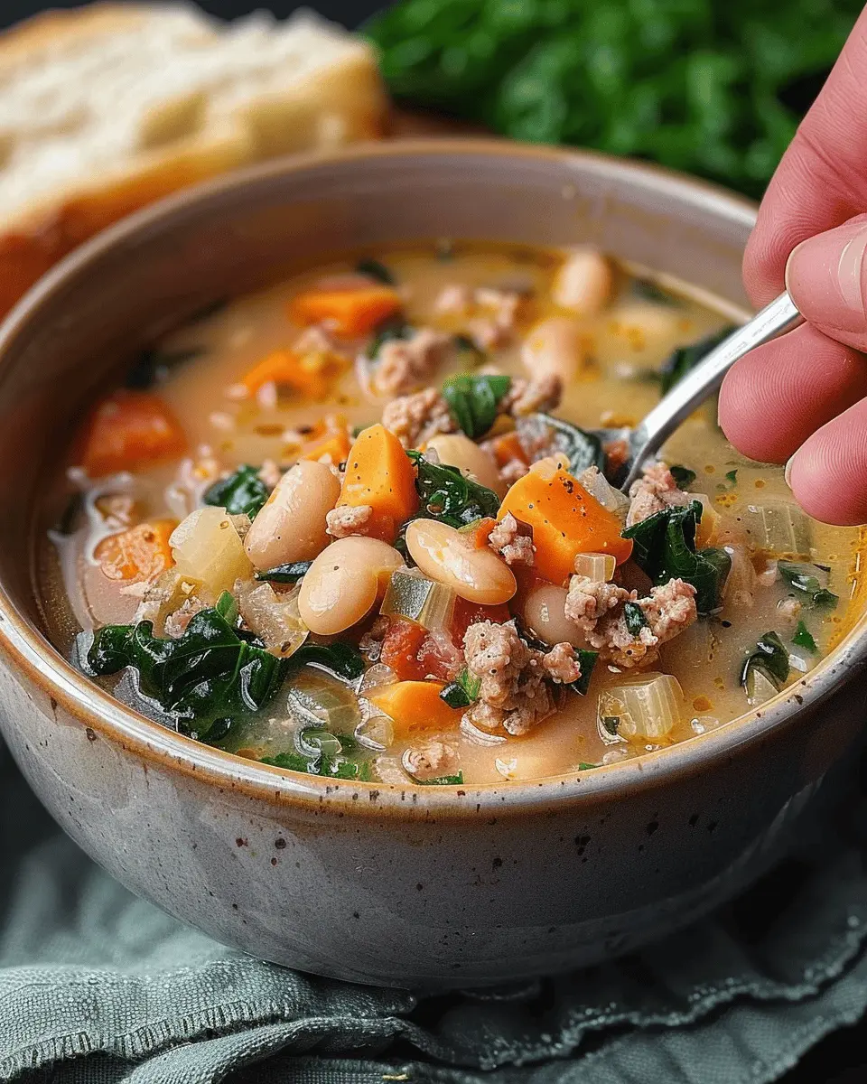 In summary, Italian Sausage and White Bean Soup is a delightful dish packed with flavor, nutrition, and warmth. Not only does it provide the hearty goodness of Italian sausage and white beans, but it also offers a comforting bowl of nourishment that’s perfect for any day of the week. Whether you’re winding down after work or hosting friends for dinner, this soup is sure to impress.