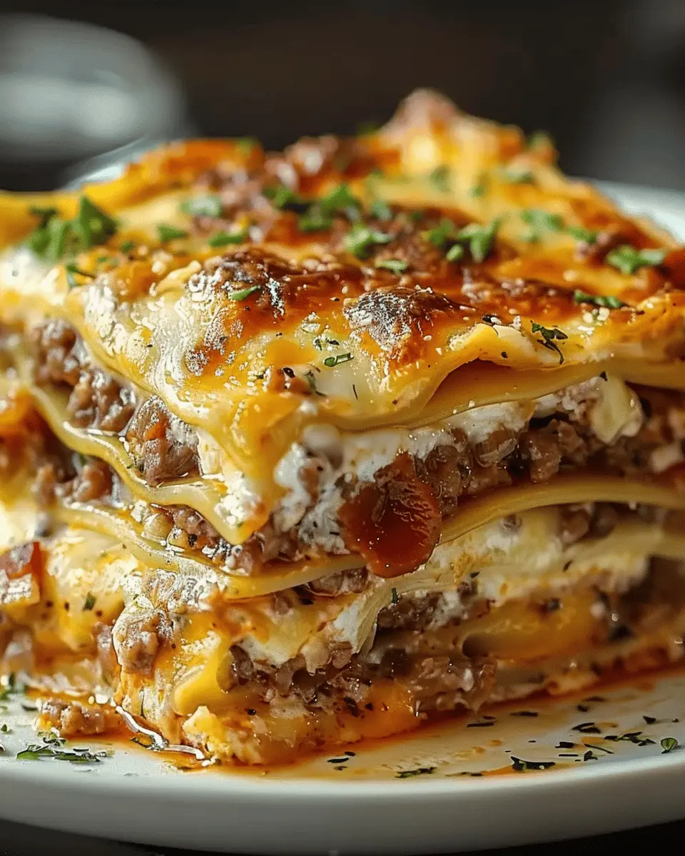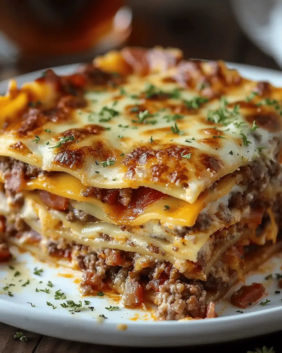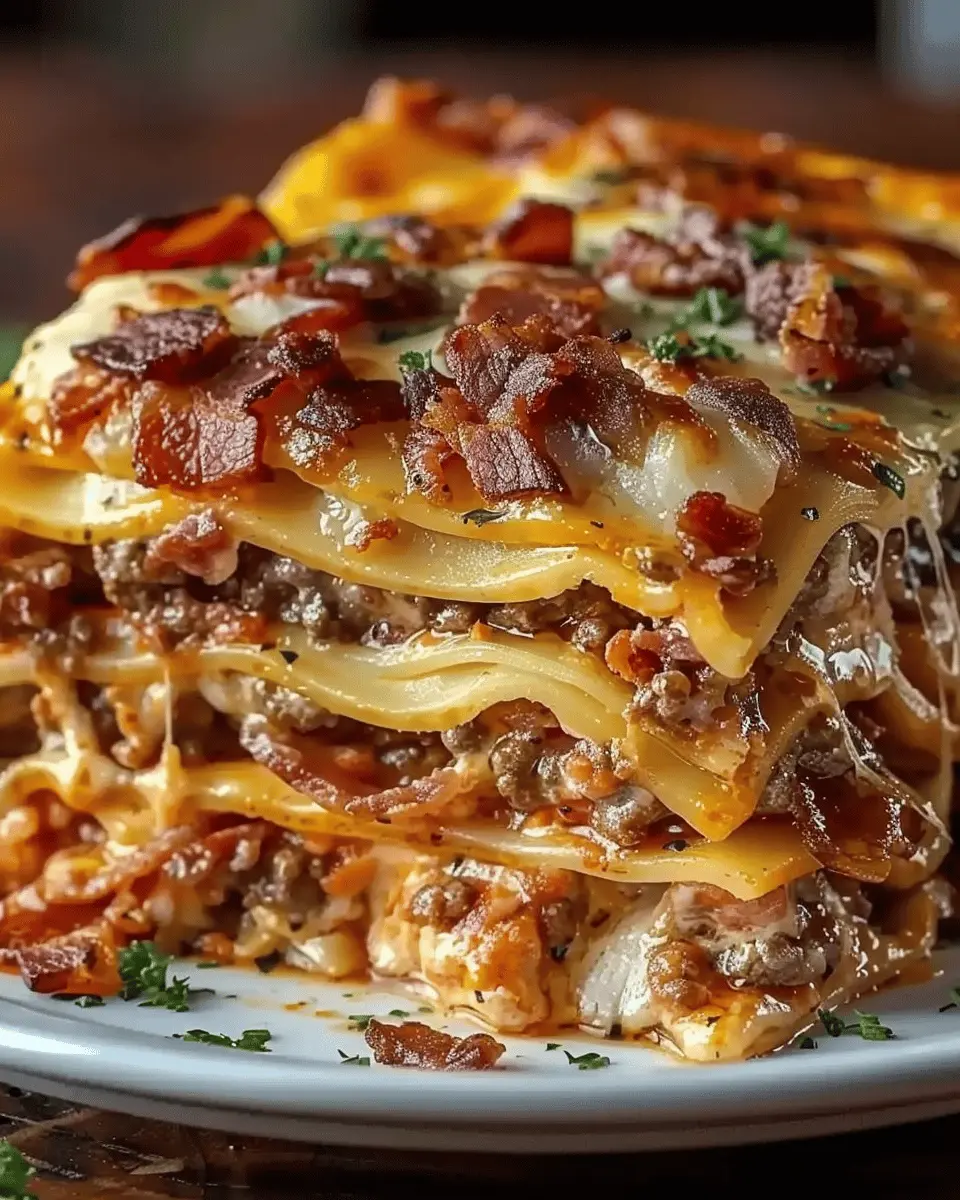 PrintParmesan Garlic Turkey Bacon Cheeseburger Lasagna Recipe: Indulgent Comfort Food