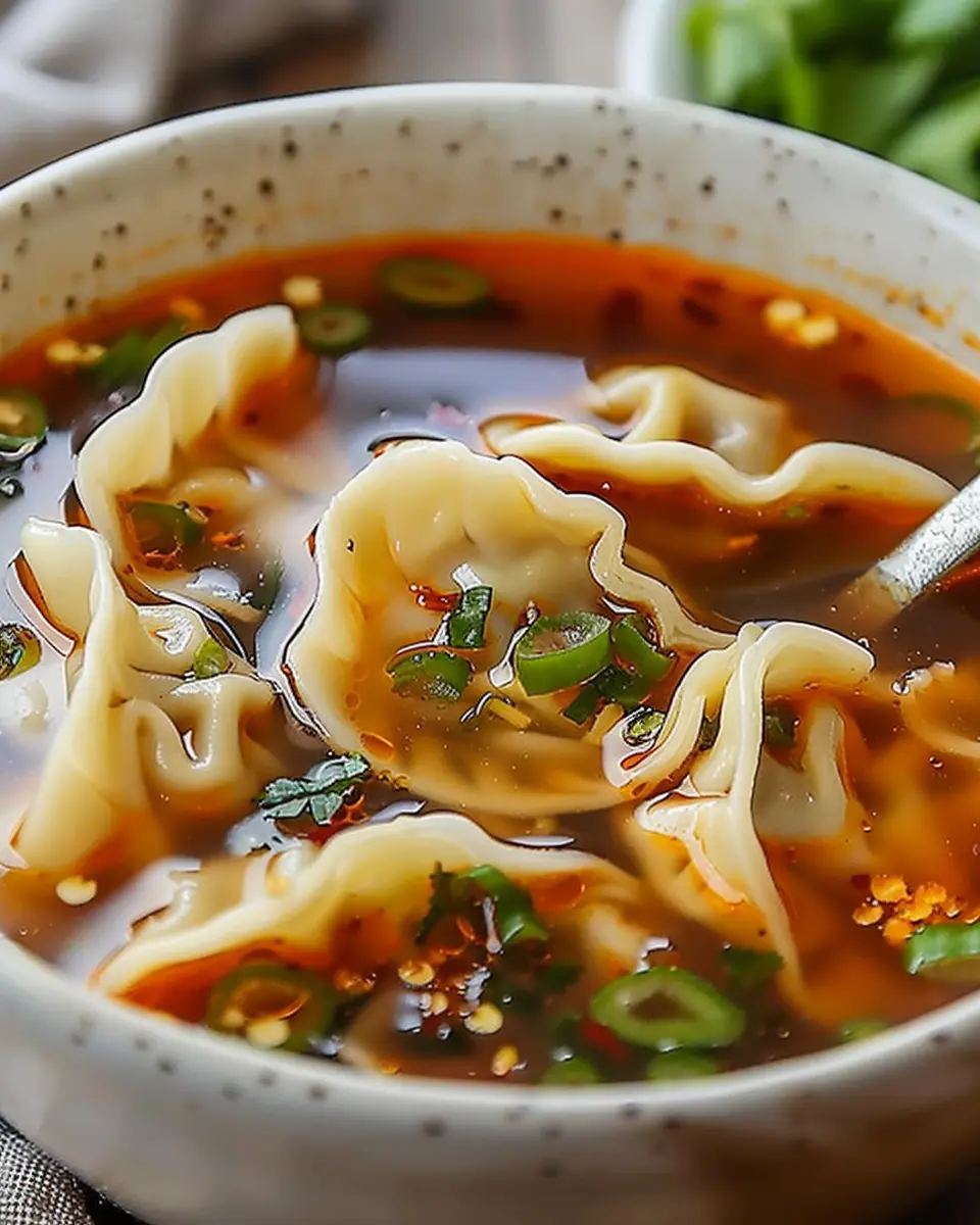If you thrive on spicy food, this variation of potsticker soup will surely excite your taste buds. Start with your regular broth but add some extra heat by incorporating red pepper flakes or even a splash of chili oil.