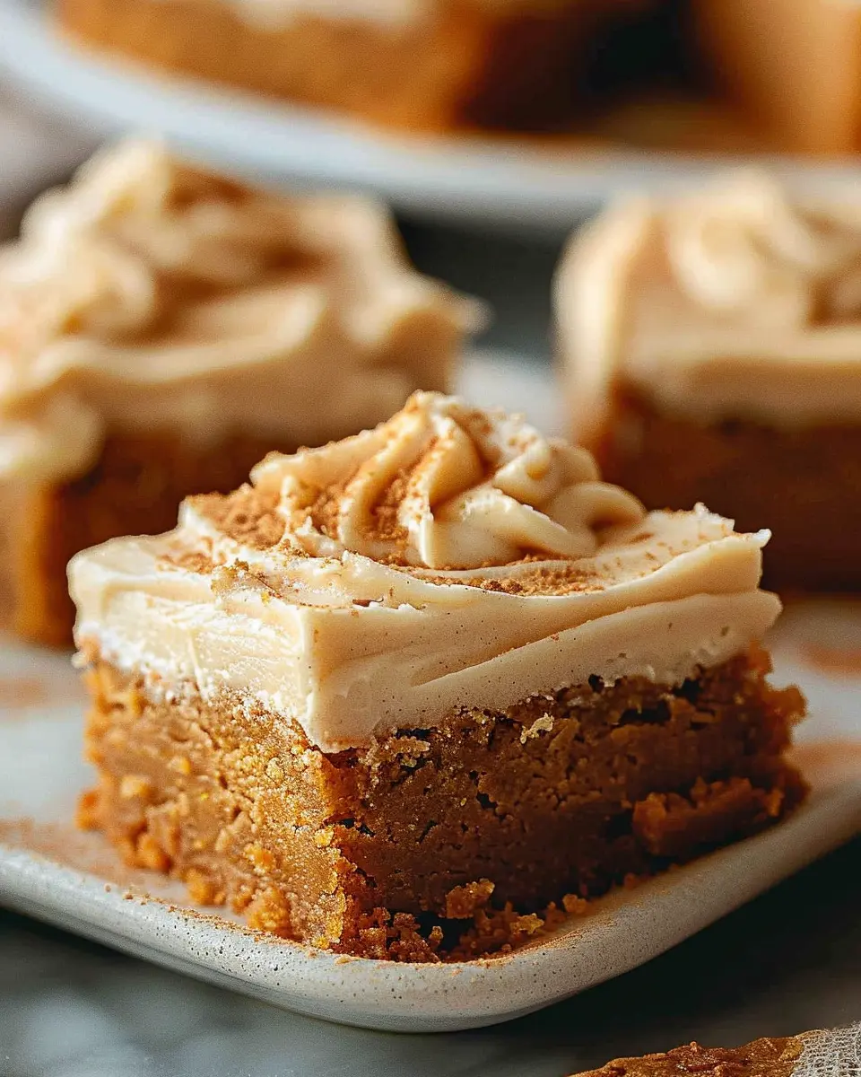 Keywords: Pumpkin Bars, Brown Sugar Frosting, Fall Treats, Desserts