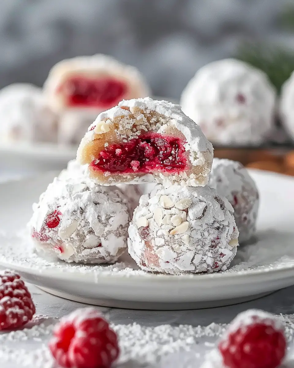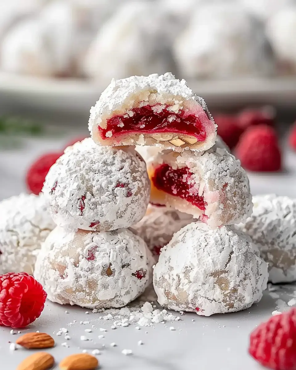 PrintRaspberry Almond Snowball Cookies: Easy to Whip Up and Delicious