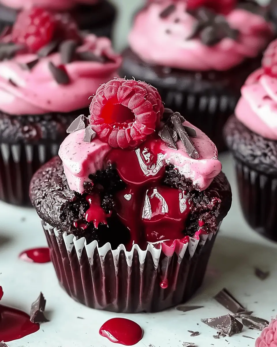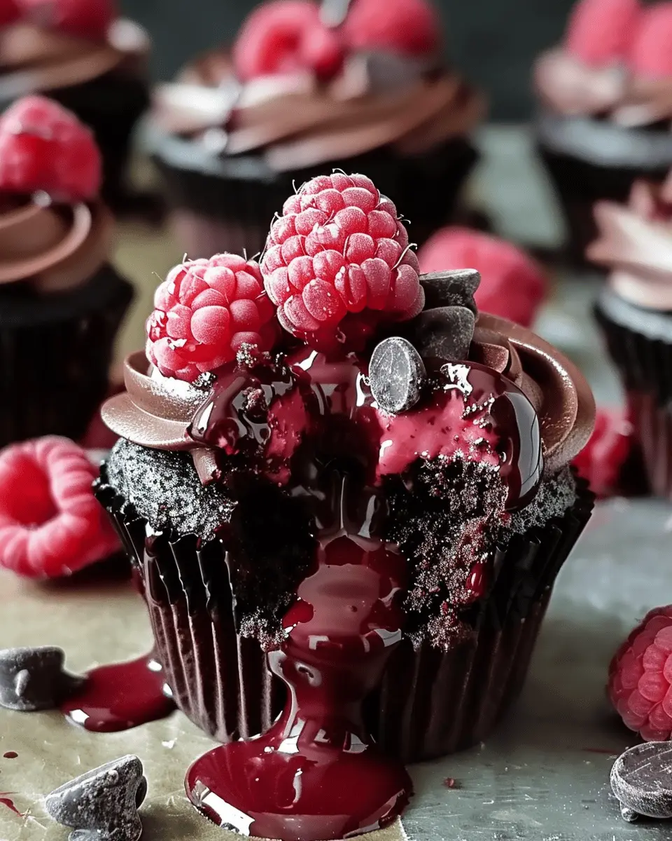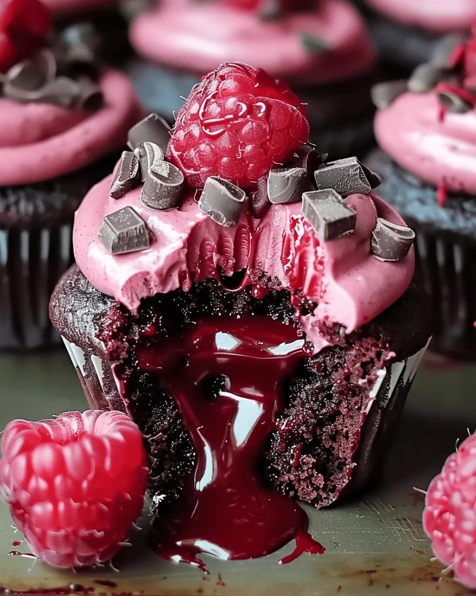 Indulge in these decadent Raspberry Chocolate Lava Cupcakes, a perfect dessert for chocolate lovers.