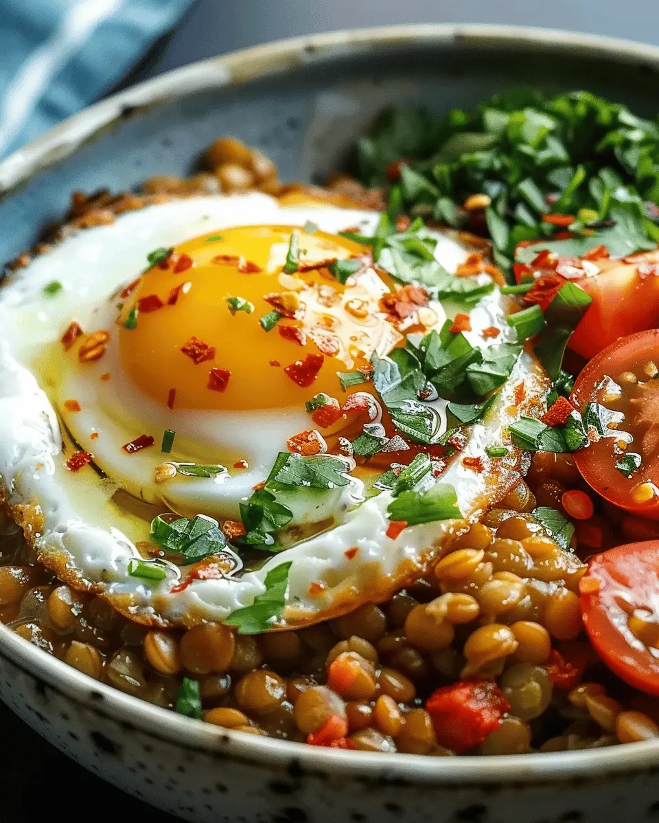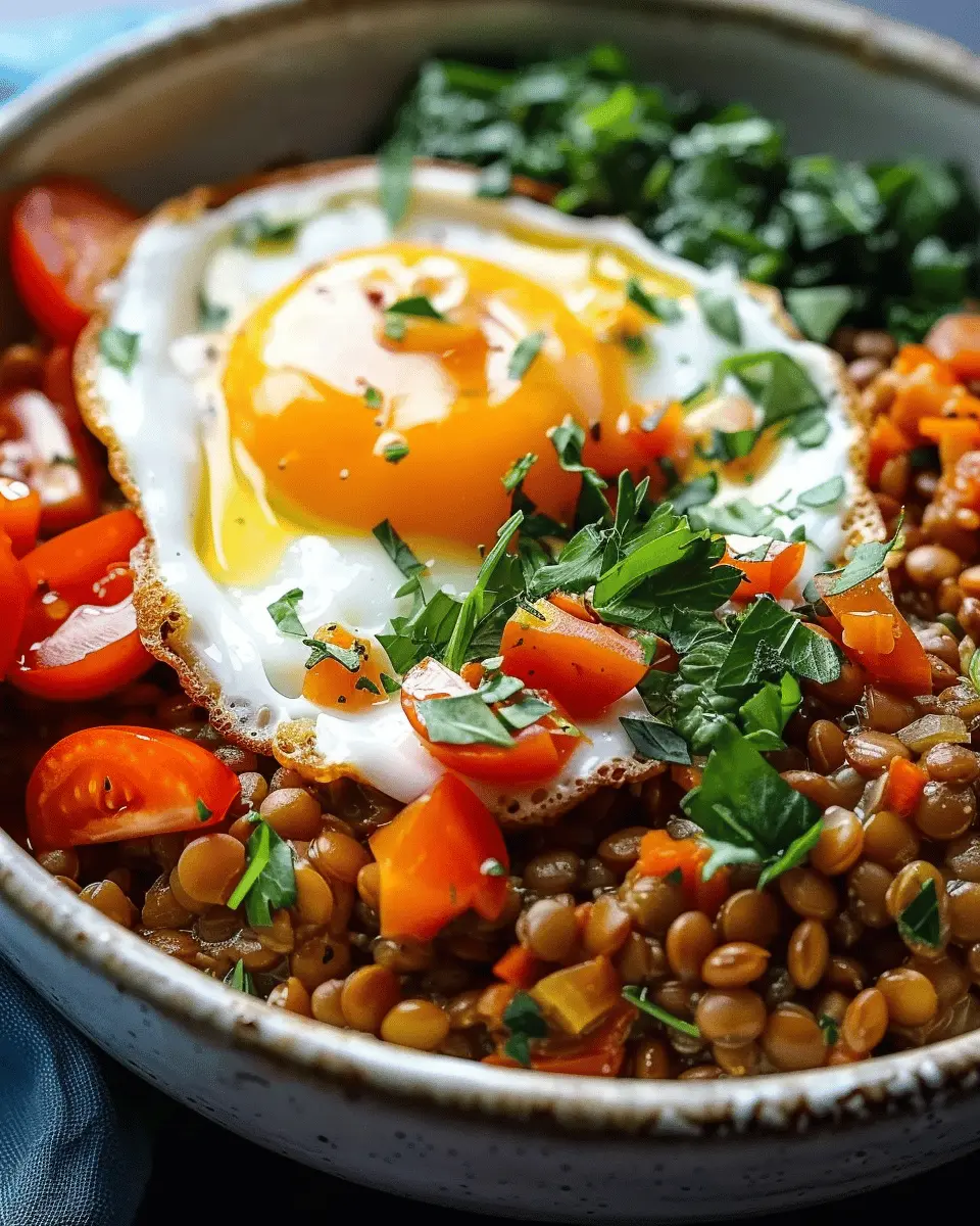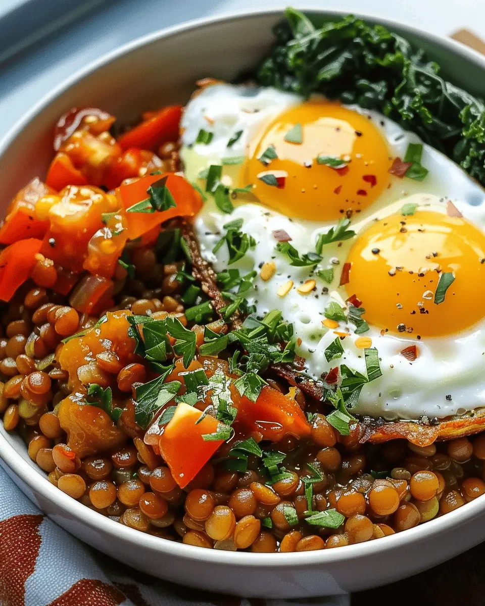 A delicious and nutritious breakfast bowl featuring lentils, perfect for starting your day with energy.