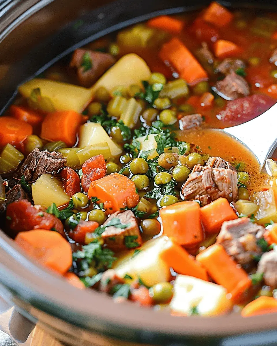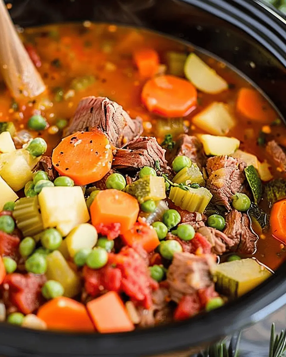 PrintSlow Cooker Beef and Vegetable Soup: Easy Comfort in a Bowl