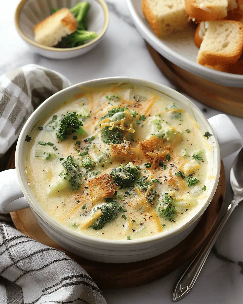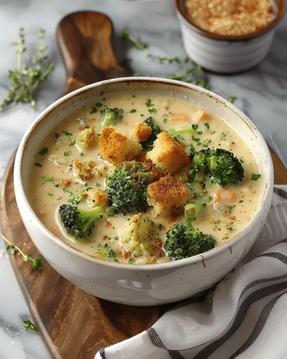 Serve your smoked gouda broccoli soup hot, paired with crusty bread for dipping, or topped with croutons for that extra crunch. Enjoy this comforting dish with family or friends, making sure to savor every bite!