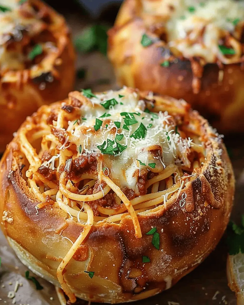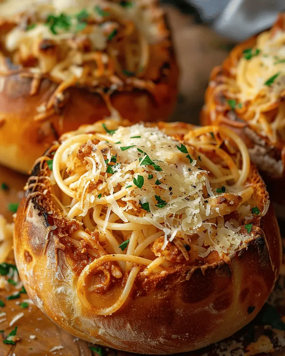 Convenience and Flavor: The beauty of these bowls lies in their simplicity. You can whip up a fantastic meal with minimal prep time. By baking your spaghetti inside a garlic bread shell, you’re not only saving time but also creating a dish that’s bursting with flavor. Each bite is an experience—rich and savory spaghetti seamlessly melded with aromatic garlic bread.
