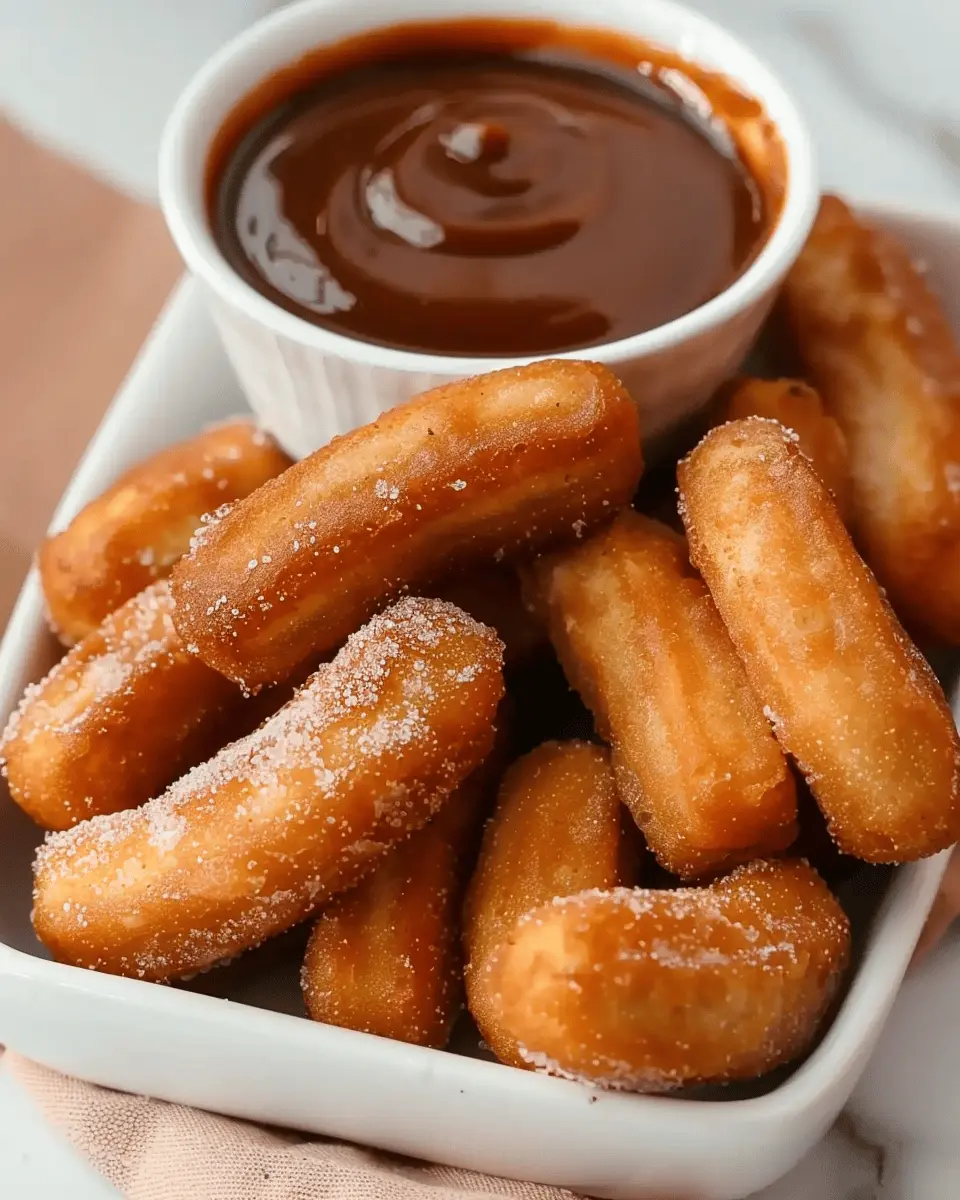 If you’re looking to elevate your sweet air fryer churro bites, try adding a rich, molten chocolate center! Simply pipe some chocolate ganache or your favorite chocolate spread into the dough before frying. The combination of golden, crispy churro on the outside and gooey chocolate on the inside is pure indulgence. It’s a treat that’s perfect for sharing with friends or satisfying your own sweet tooth. Plus, who can resist the allure of chocolate?