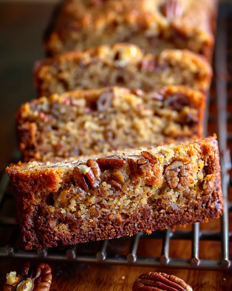 Once you’ve mixed everything, it’s time to pop it in the oven. Bake your pecanbread for about 50-60 minutes, depending on your oven. This is the moment when your kitchen will be filled with that irresistible aroma—trust me, it’s worth the wait!