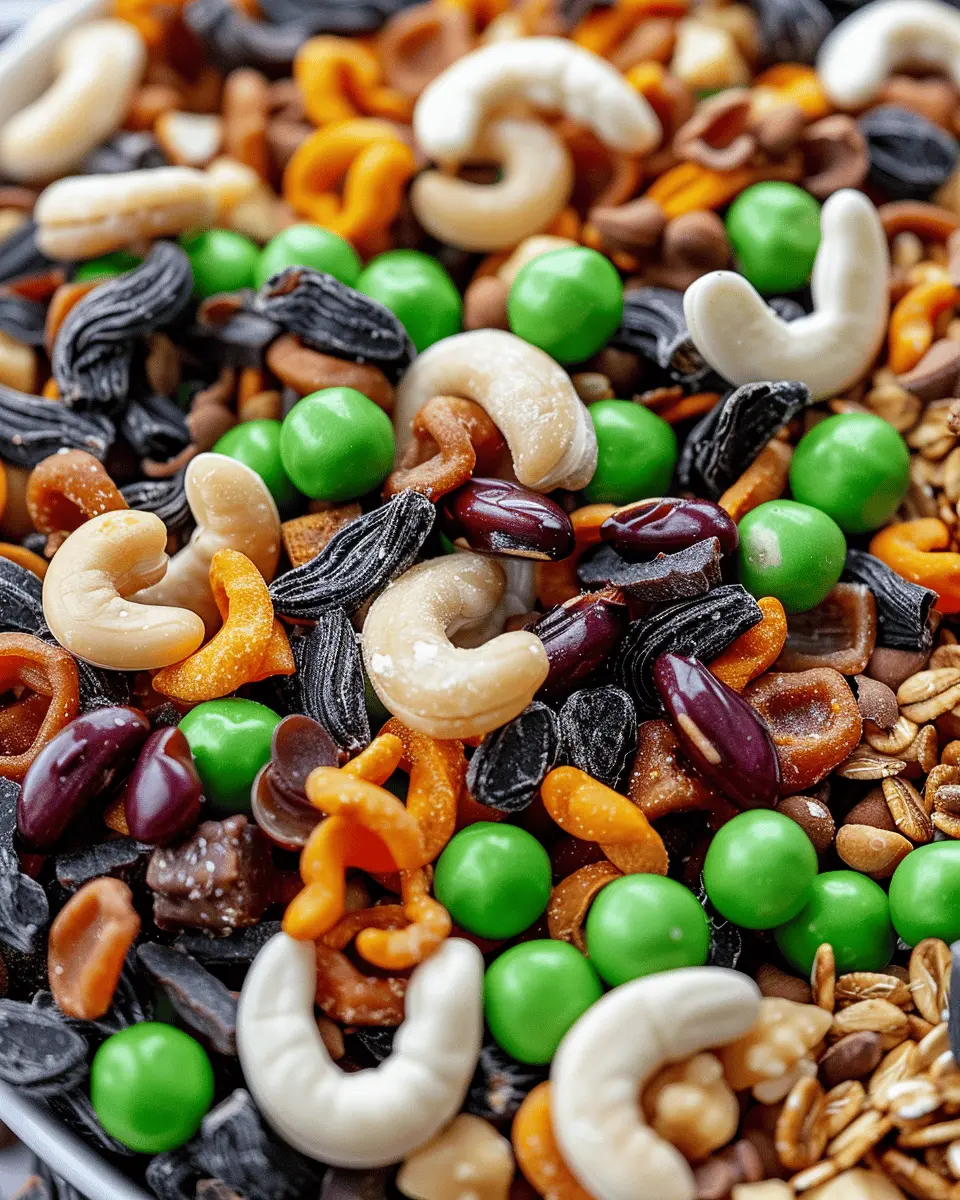 And let’s not forget the fun part—customizing your mix with seasonal extras! Consider adding pumpkin seeds, candy corn, or even mini marshmallows for a sweet, spooky flair. This trail mix is not just a food item; it’s a culinary canvas waiting for your masterpiece.
